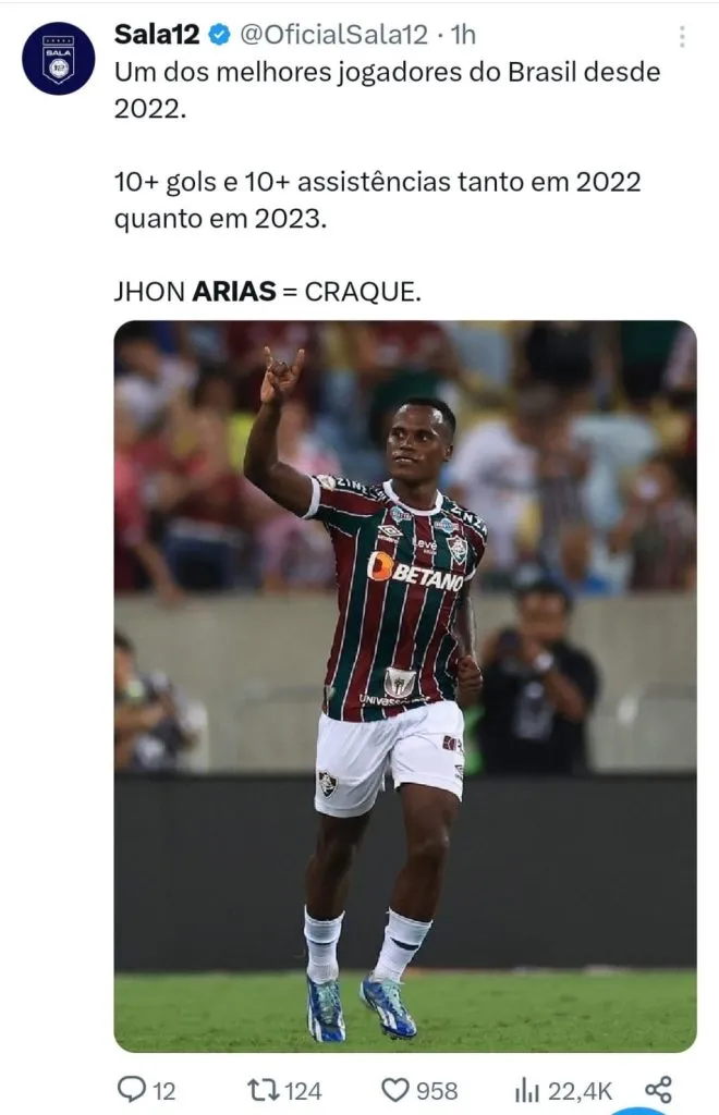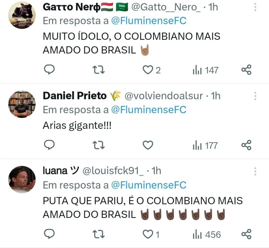 Após mais uma grande partida do colombiano, teve torcedor pedindo mais reconhecimento para Arias. “Arias precisa de mais reconhecimento. Tão importante quanto o Cano. Ídolo!!!!”, escreveu um torcedor no ‘X’.