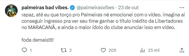 “Sua patroa pediu para eu fazer um vídeo para você, já que você não conseguiu ingresso, ‘tá’ complicado, para servir de consolo”, disse o ex-jogador no início do vídeo. Mas não durou muito tempo a “pegadinha”: logo na sequência, Fred revelou que Luanna, de fato, conseguiu os ingressos para a decisão. “A patroa conseguiu os ingressos. Coloca a armadura tricolor, vem com aquela da sorte, para a gente, se Deus quiser, comemorar junto esse título no dia 4. Te espero aqui no Maraca. Aproveita, Matheusão.” Confira o vídeo completo ao final da matéria.