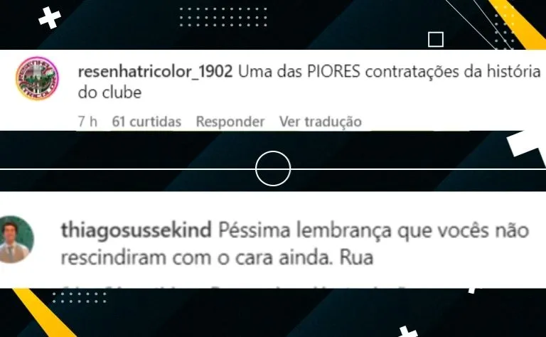 Gabriel, contratado no início de 2024 após rescindir contrato com o Benfica, vem sendo alvo de insatisfação por parte da torcida, que o considera uma das piores contratações recentes do clube. Confira algumas reações através da plataforma do Instagram.