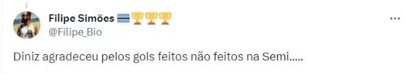 “Diniz agradeceu pelos gols feitos não feitos na Semi”, brincou um torcedor nos comentários.