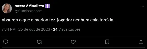 “A única ocasião que eu aceito vaia ao jogador é a que foi feita ao Marlon. Nada a ver ele manda o torcedor calar a boca. Não concordo em vaiar o time, mas o torcedor tem seu direito”, “Eu nem vejo essa final se ele colocar o Marlon no jogo” e “Absurdo o que o Marlon fez. Jogador nenhum cala torcida”, foram alguns dos comentários.