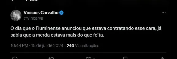 Diretoria do Fluminense e os torcedores que apoiam a contratação são totalmente responsáveis.