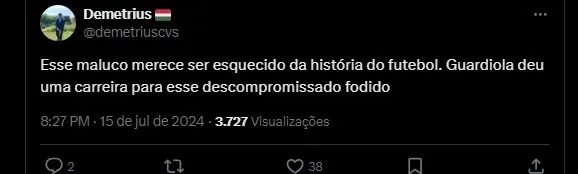 Esse maluco merece ser esquecido da história do futebol. Guardiola deu uma carreira para esse descompromisso f#&%