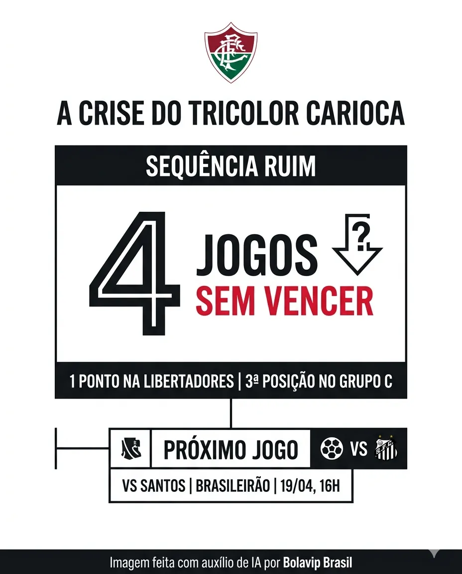 O Fluminense vive um momento de pressão após alcançar quatro partidas consecutivas sem vitória na temporada. Na Copa Libertadores da América, a equipe soma apenas um ponto em dois jogos e ocupa a terceira colocação do Grupo C.
