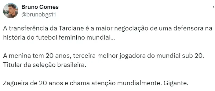 Na última sexta-feira (19), o Corinthians selou a maior transferência do futebol feminino brasileiro – e a quarta maior do mundo. O clube acertou a venda da zagueira Tarciane.