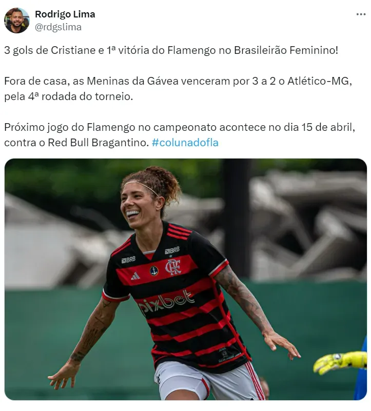 A experiente atacante fez jus ao seu nome e garantiu a primeira vitória do Flamengo. Claro, ela fez bonito. Anotou um hat-trick no triunfo das Rubro-Negras diante do Atlético-MG.