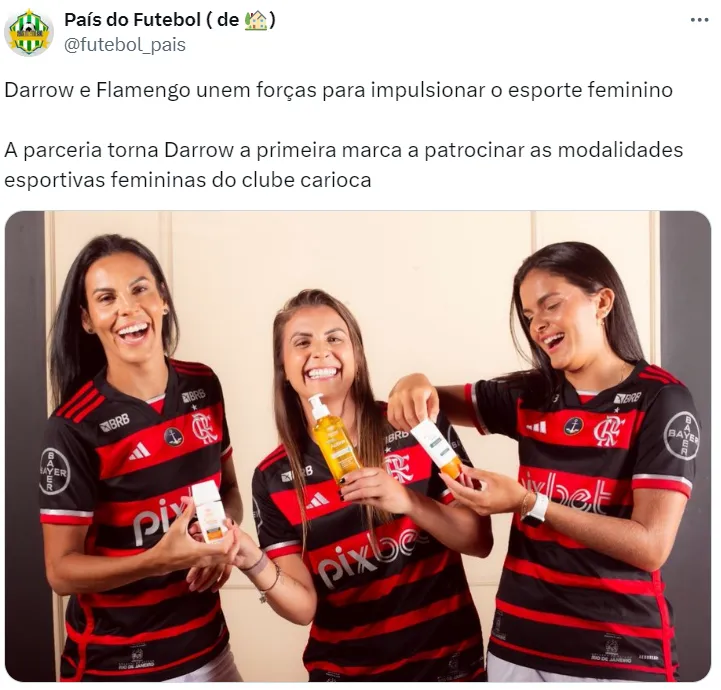 Além da Darrow, outra patrocinadora da modalidade feminina será a Adidas. A empresa já é a grande parceira do Flamengo no futebol masculino, mas o vínculo beneficiará as mulheres.