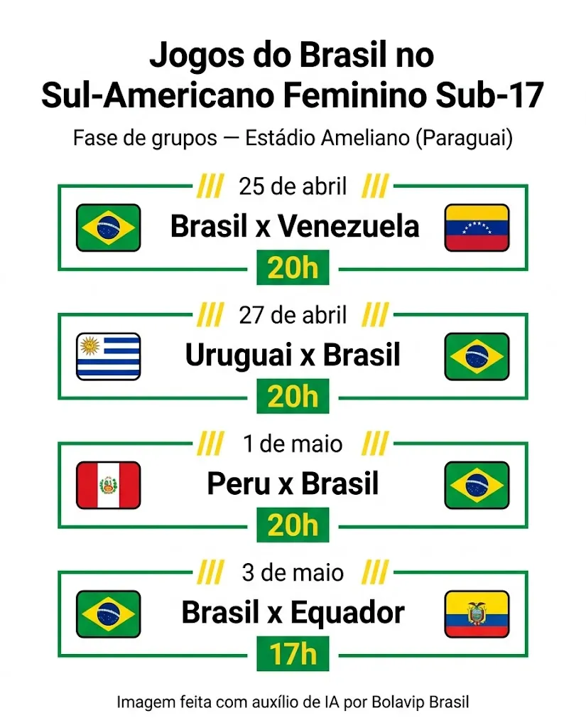 A Seleção Brasileira estreia no Campeonato Sul-Americano Feminino Sub-17 neste sábado (25), contra a Venezuela. A bola rola às 20h (de Brasília), no Estádio Ameliano, no Paraguai, pela primeira rodada da fase de grupos.