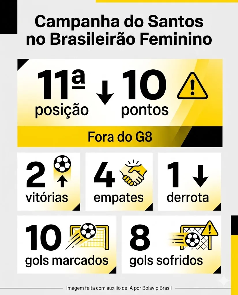 Com 10 pontos, as Sereias da Vila ocupam a 11ª posição, fora da zona de classificação para as quartas de final, com duas vitórias, quatro empates e uma derrota, além de 10 gols marcados e oito sofridos.