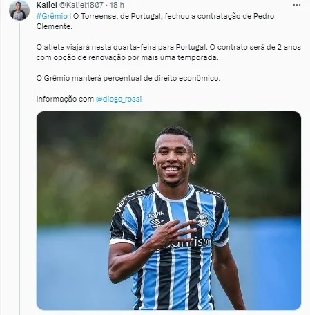 Segundo o setorista gremista Kaliel, as negociaçõesentre Torreense e Pedro Clemente foram finalizadas e ele acertou sua ida para o futebol português. “O Torreense, de Portugal, fechou a contratação de Pedro Clemente. O atleta viajará para Portugal. O contrato será de 2 anos com opção de renovação por mais uma temporada”.