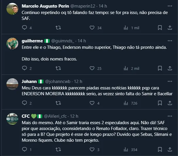 Dito isso, de olho nas opções para 2024, os torcedores do Alviverde do Alto da Glória estão começando a analisar a possibilidade de alguns nomes. Ontem (22), por exemplo, trouxemos os nomes de Cláudio Tencati e Thiago Carpini.