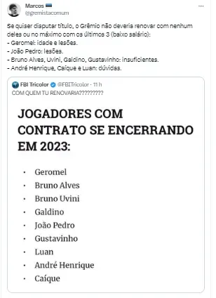 De acordo com informações apuradas e trazidas pelo portal GZH, a diretoria do Imortal sinalizou nos bastidores que não irá renovar o contrato do jogador e ele deve ficar livre no mercado após o fim do seu vínculo no encerramento da temporada de 2023.