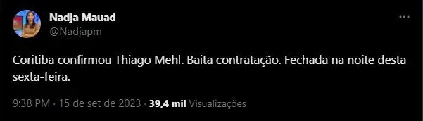 Assim, no fim da noite desta sexta-feira (15), o Coxa não perdeu tempo e anunciou a contratação de Thiago Mehl para ser o novo preparador de goleiros. O profissional fazia parte da comissão da Seleção Brasileira feminina e deixou o cargo após a Copa do Mundo. Agora, ele tentará melhorar o preparo dos arqueiros do Coxa, justamente para que Samaris, Slimani e CIA tenham mais tranquilidade para atuarem.