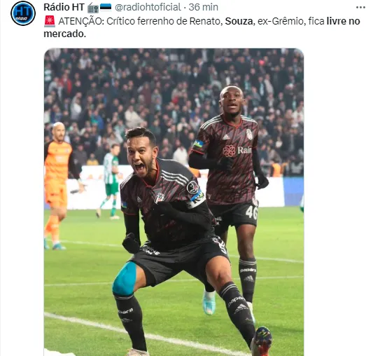 Em meio a isso, a situação de um ex-jogador do Tricolor de Porto Alegre veio à tona e trata-se de um atleta que é desafeto do atual treinador da equipe gaúcha. O meio-campista Souza já fez grandes críticas a Renato: “Renato ganhou muita copa lá no Grêmio e tal, mas vê o que que ele fez no Campeonato Brasileiro? Nunca fez nada”, disse na época.