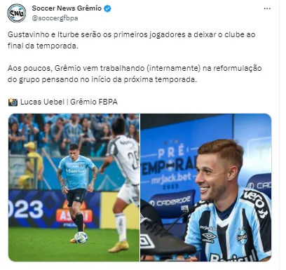 “Gustavinho e Iturbe serão os primeiros jogadores a deixar o clube ao final da temporada. Aos poucos, Grêmio vem trabalhando (internamente) na reformulação do grupo pensando no início da próxima temporada”, informou.