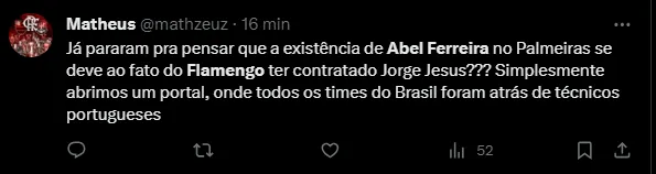 Nem mesmo o próprio elenco palmeirense sabia da decisão de Abel, o que deixou os torcedores de outros clubes esperançosos pela saída do treinador, que está em uma trajetória vitoriosa no Alviverde.
