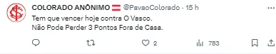 A equipe do Internacional vem de uma vitória importante na última rodada, que eu deixou na 14ª posição na tabela de classificação com 35 pontos, mas ainda está apenas cinco pontos à frente do primeiro colocado na zona de rebaixamento, o adversário desta quinta-feira, o Vasco.