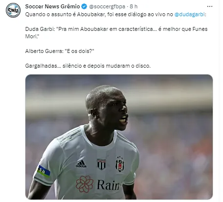 “Guerra: Brincou dizendo que o não do Aboubakar já tem, aí foram atrás pra saber se quer jogar aqui no Brasil, quanto ganha e qual a condição do negócio (o post é de informação, mas fiquei com a sensação que ambos pareciam muito confiantes ao falar do Aboubakar)”, relatou o jornalista.
