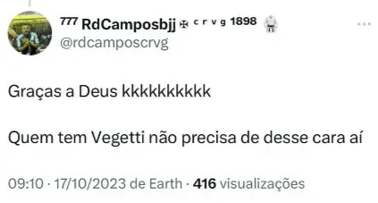 Isso porque o atacante Vegetti, que já é o principal jogador do Vasco na temporada, aproveitou o tempo livre para ir ao CT do Cruz-Maltino para treinar e aprimorar ainda mais sua parte física. A decisão do centroavante fez com que o profissional caísse ainda mais nas graças da torcida. Graças a boa fase do artilheiro, os fanáticos vascaínos podem esquecer o que um grande craque mundial fez com o Clube meses atrás.