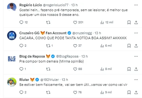 O atacante é muito querido pela torcida cruzeirense e seu retorno é visto com bons olhos. Ainda existem outros nomes especulados e a tendência é que para 2024, o Cruzeiro seja mais intenso no mercado.
