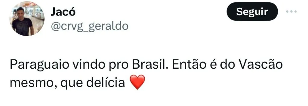 Isso porque, o zagueiro Júnior Alonso publicou na madrugada desta sexta-feira (15), em suas redes sociais, que está a caminho do Brasil e empolgou a torcida do Vascão. Apesar da postagem, ainda não se sabe o motivo pelo qual Junior Alonso está vindo ao Brasil.