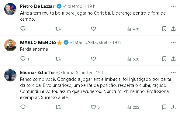 Apesar da vínculo desfeito, o volante, considerado uma das lideranças e ídolos da torcida, deixa sua marca na história do Coritiba como o quinto jogador que mais atuou pelo clube neste século, com 250 jogos.
