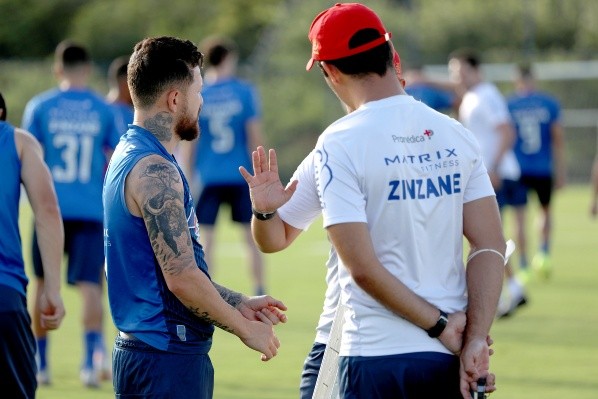 Rossi conversa com Dado em treino desta sexta-feira na Cidade Tricolor (Foto: Felipe Oliveira / EC Bahia)