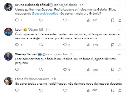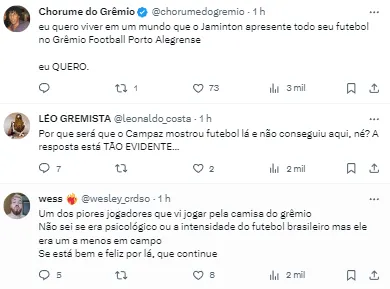 Repercussão nas redes sociais dos gremistas