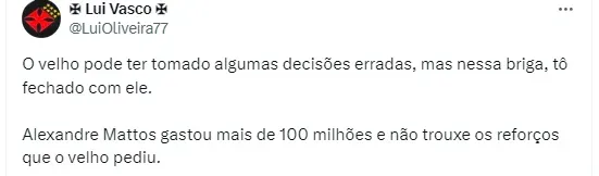 Veio à tona que o diretor de futebol Alexandre Mattos se reuniu com a 777 Partners, SAF do Clube Carioca, logo após a queda na semifinal do Campeonato Carioca, com o objetivo de falar sobre a necessidade de qualificar o elenco.