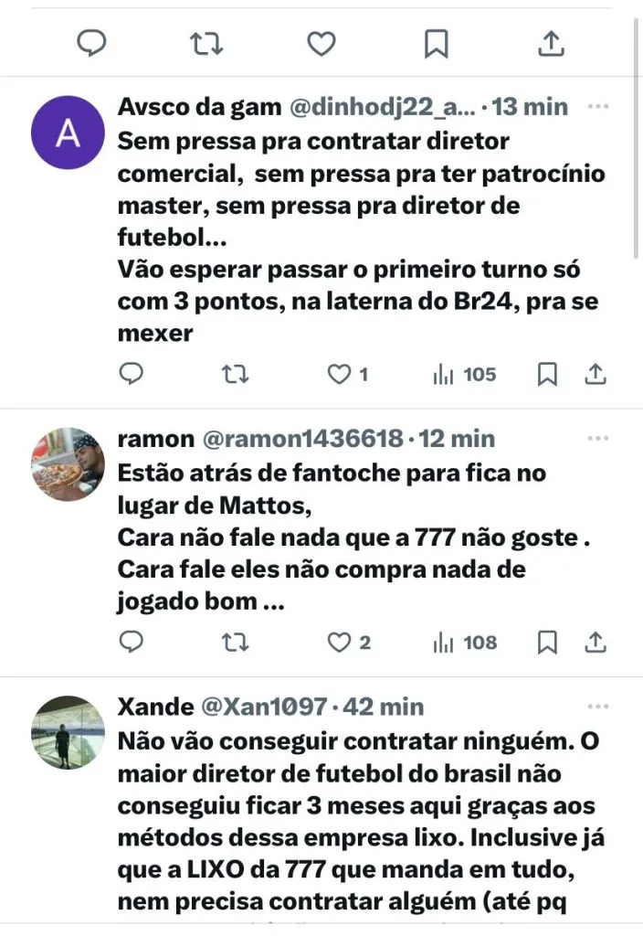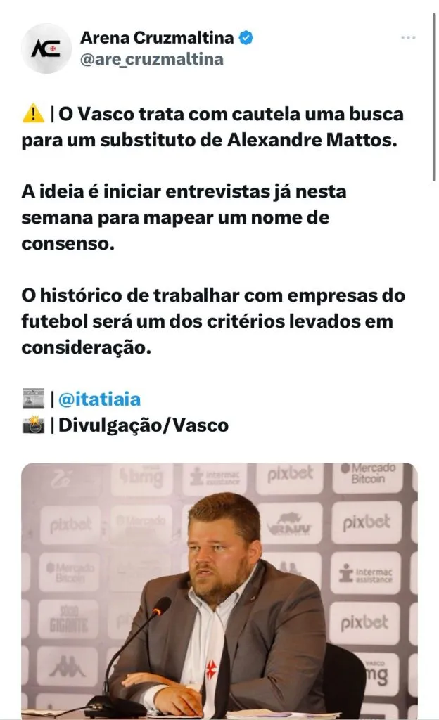 Através do X (antigo Twitter), o jornalista Venê Casagrande afirmou que dirigentes flamenguistas negaram qualquer contato com o diretor de futebol. Em relação à procura por um novo nome, a torcida vascaína terá que aguardar.