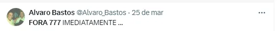 Declarações de Pedrinho chegam aos donos da 777 e clima fica ainda pior