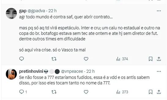 Quer a 777 fora do Vasco?