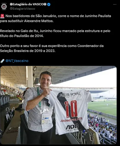 De acordo com informações apuradas pelo portal NT Vascaíno e que foram repercutidas pelo NetVasco, Juninho Paulista está ganhando força nos bastidores para assumir o lugar que foi deixado pelo ex-dirigente do Gigante da Colina.