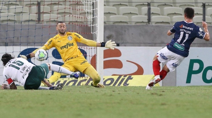 Weverton realiza defesa à queima-roupa. Decisivo para evitar uma goleada. (Foto: César Greco/Ag. Palmeiras)