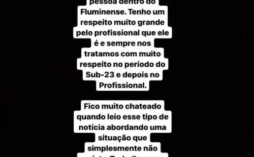 Além disso, Ailton, desafeto de André, é o treinador do time sub-23 do Fluminense. O volanteteria manifestado, em certa ocasião, insatisfação pela forma como o comandante dos Aspirantes passava as atividades. A notícia caiu como uma bomba no CT Carlos Castilho e o próprio atleta foi às redes sociais para se manifestar a respeito do tema.