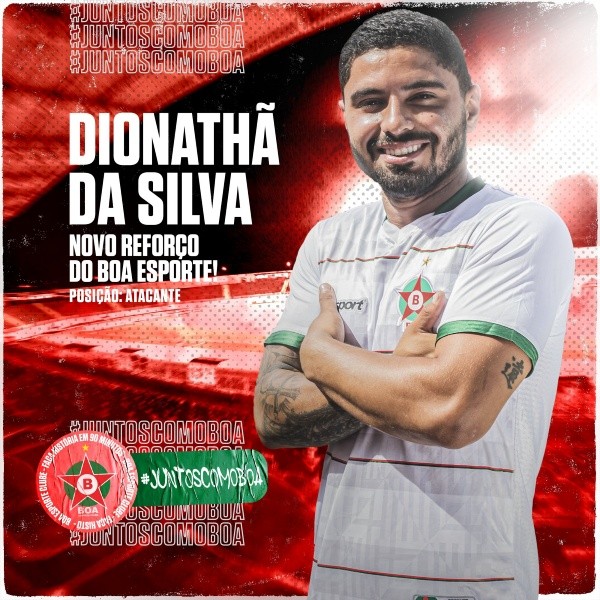 “O atacante Dionathã está #FechadoComOBoa para 2022. Além de acumular passagens pela Seleção Brasileira sub-17, Avaí e Paysandu, Dionathã foi revelado pela categoria de base do Grêmio. O atacante disputou a Liga de Portugal em 2020 e 2021 pela equipe UD Oliveirense”, publicou o Boa Esporte em suas redes sociais para anunciar o atleta nesta semana.