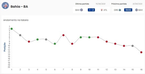 Gráfico mostra queda do Bahia na tabela:Foto: CBF
