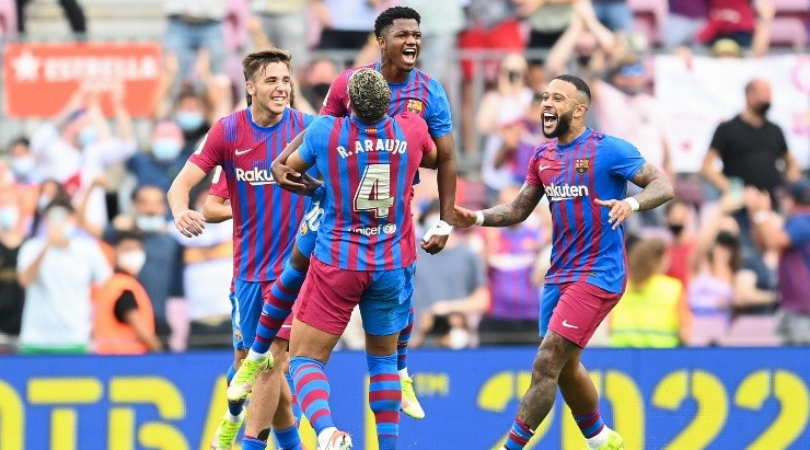 Jogadores do Barcelona comemoram gol contra o Levante (Foto: Getty Images)