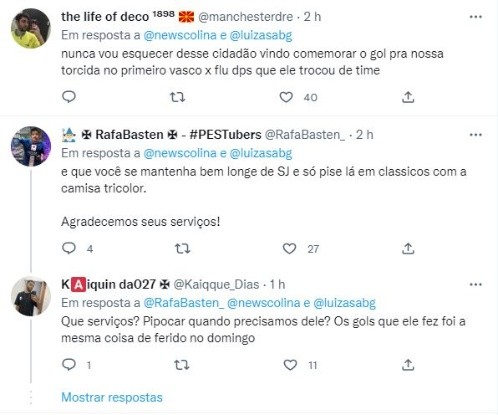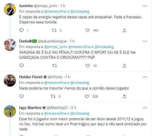 No entanto, a declaração não foi bem digerida pela torcida vascaína, que fez críticas ácidas ao atacante. Poucos pediram seu retorno e, a grande maioria, demonstrou que Cano está do outro lado da trincheira e repudiou o apoio do ex-camisa 14 de São Januário.