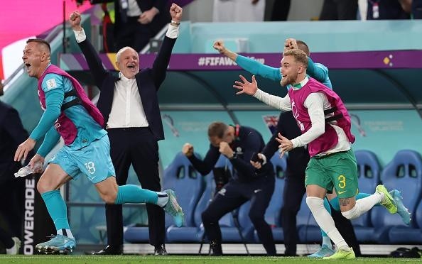 A Austrália esteve apenas em seis edições da Copa do Mundo, 16 anos após se classificar em segundo lugar – no grupo do Brasil – na Copa da Alemanha, em 2006, repetindo o feito este ano. Naquela vez, os Socceroos caíram diante da Itália nas oitavas. A próxima partida da seleção da Oceania será no sábado, como primeiro colocado do Grupo C, podendo ser Argentina, Polônia, México, ou Arábia Saudita
