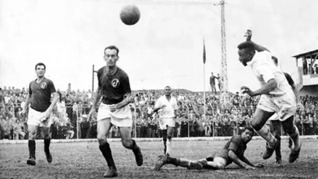 Foto: Acervo/Santos FC – Pelé marcou um gol histórico contra o Juventus na Rua Javari