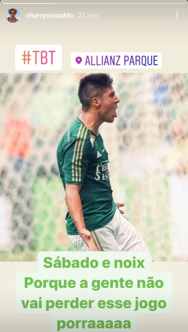 “Churry”, como era conhecido pelo torcedor palmeirense, soltou o palavrão no Instagram para desejar os melhores votos aos ex- companheiros. “Sábado é noix, porque a gente não vai perder esse jogo, por..”, escreveu o atacante.