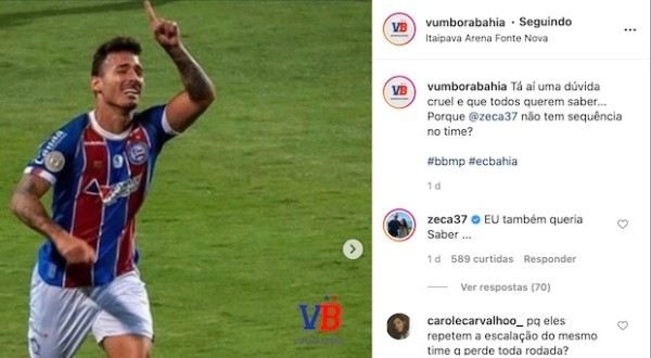 Foi nessa linha que Zeca, através de uma rede social, entrou em cena. No Instagram, uma páginaindagou o atleta por conta das poucas chances no elenco do técnico Dado Cavalcanti. O lateral não ficou calado e, em resposta, relatou que também gostaria de entender a escolha.