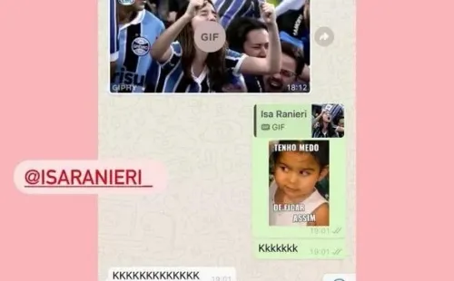 Porém, como em qualquer classico, a vitória trouxe provocações. Considerado um dos ídolos gremistas, o atacante Everton Cebolinha, muito identificado, teve sua mulher agitando as redes sociais. Amiga da esposa de Boschila, do Inter, não perdoou e fez uma provocação por meio do whatsapp, que foi compartilhada no Instagram.