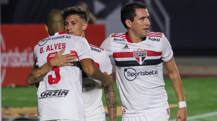 Jogadores do São Paulo comemoram gol (Foto: Marcello Zambrana/AGIF)