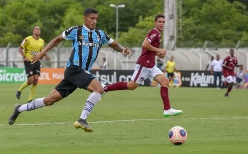 Enquanto uma ‘cria’ está com um pé fora de Porto Alegre, outro ainda sequer deu os primeiros passos no time profissional. Com informações do jornalistaCesar Cidade Dias, a base Tricolor está prestes a revelar um novo fenômeno que atua, preferencialmente, como centroavante – posição “carente” no elenco e que conta, basicamente, só com Diego Souza.