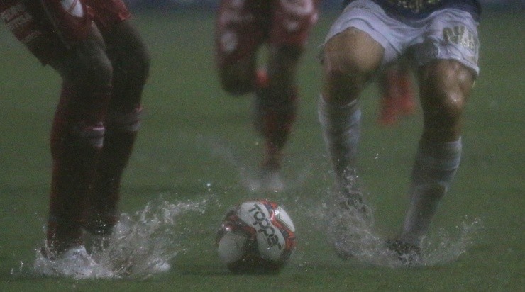 Campo do Independência estava encharcado no início do jogo (Foto: Fernando Moreno/AGIF)