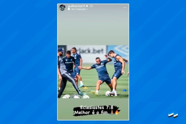 Nesta quarta-feira (1), Guilherme publicou uma imagem em sua conta no Instagram em que aparece treinando com a seguinte legenda escrita: “Melhor é o fim. Eclesiastes 7.8″. Após a vitória contra o São José, no fim de semana, o próprio Renato veio a público defender o ponta, contratado na janela do meio de 2022.