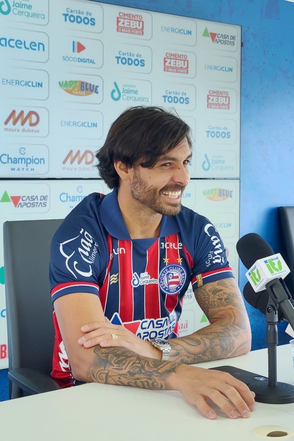 Grande contratação da janela de transferências do Bahia e realizadajá pensandona Sociedade Anônima do Futebol (SAF) com o Grupo City, a chegada de Ricardo Goulart foi sacramentada com a entrevista coletiva de apresentação do meio-campista que deixou o Santos há poucoas semanas.