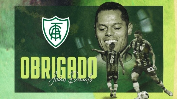 “Valeu, João Paulo! O lateral-esquerdo, que ficou por 4 temporadas e fez mais de 100 jogos, não terá o vínculo renovado. Agradecemos por todo o empenho com a nossa armadura”, escreveu o América-MG nas redes sociais.Na última temporada, o lateral disputou 17 partidas com a armadura americana, incluindo jogos de Campeonato Mineiro, Brasileiro, Copa do Brasil e Libertadores.